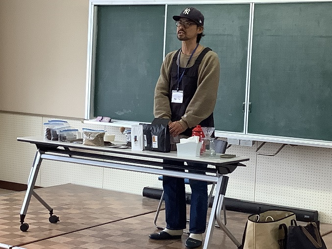 11月25日(火)総合的な学習の時間に、コーヒー名人の伊藤さんをお招きしました。コーヒー豆のことや、コーヒーの焙煎の仕方など、コーヒーについて詳しく教えていただきました。子どもたちは、実際にコーヒー豆を挽いたものの香りを楽しませてもらい、「いいにおいだね。」とうれしそうにしていました。