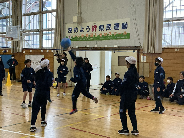 体育でキャッチバレーボールの学習をしています。学習したことを生かせるよう、学年で「きらきらカップ」を行いました。声を掛け合い、応援し合い、大盛り上がりでした。優勝チームは、来週、先生チームと戦います。