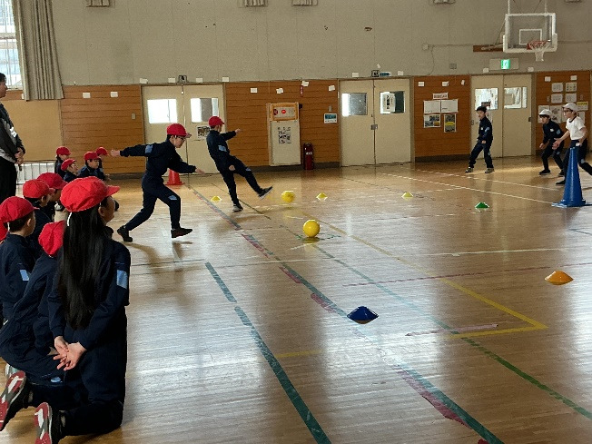 体育でキックベースボールの学習をしました。攻め方や守り方はどうしたら良いか、どんな声掛けをしたらチームが頑張れるかなど、それぞれのグループで真剣に作戦を立てて試合を行いました。「ナイスディフェンス」や「ナイス1点」など素敵な声掛けが増え、楽しく活動できました。