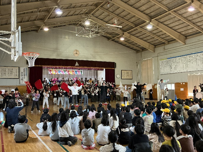 六送会が行われました。1~5年生がこの日のためにそれぞれ準備をして臨み、全校でゲームやダンスなどを楽しみました。5番勝負の最終決戦は5年生との大縄対決でした。結果は僅差で6年生が勝利。両者譲らない、本気の勝負に全校児童が釘付けでした。6年生は「ダンス・合唱・応援」を披露し、会を準備してくれた1~5年生へ感謝と激励の気持ちを届けました。