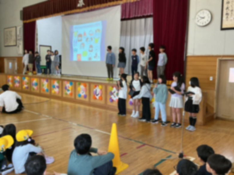 「1年生を迎える会」が行われました。5年生は、1年生に楽しんでもらえるように、工夫をこらしたクイズを出題しました。クイズは全部で6問。身近な学校生活に関する内容や、少しひねった問題などもあり、1年生も笑顔いっぱいで楽しんでくれました。「どんなクイズにしたら1年生がわかってくれるかな」と、グループで話し合いながら準備を進めました。会が終わった後には、「1年生がたくさん手を挙げてくれてうれしかった」「思ったより盛り上がってよかった」と、達成感いっぱいの様子でした。優しさと工夫で、学校のリーダーとしての第一歩をしっかり踏み出せました。これからの活躍がますます楽しみです。