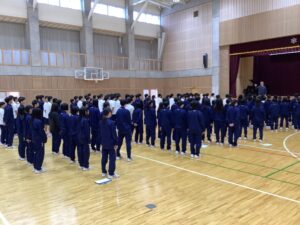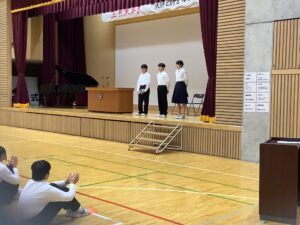 前期最終日です。新人大会や各種大会の報告会と表彰の後、前期終業式を行いました。各学年の代表者は、個人や学級、学年としてのこれまでの成果や課題をしっかりと見つめ、後期の具体的な抱負として立派な態度で述 …