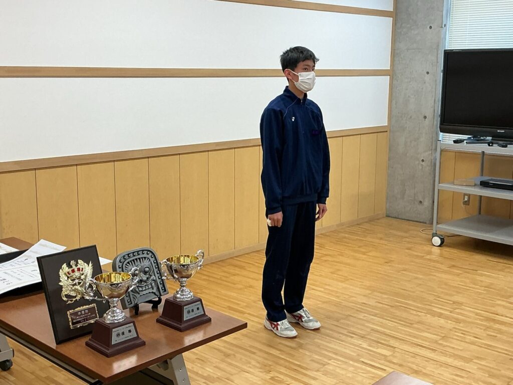 この日の全校集会は、感染拡大予防のためオンラインで実施しました。男女バレーボール、男女卓球部が、各種大会でそれぞれ見事な成績を収めました。生徒の皆さんが日頃努力を重ねている見事な成果です。おめでとう …