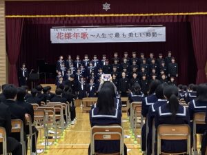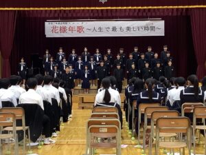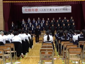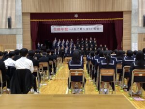 今日の午後は合唱祭でした。ご来校いただいた保護者・地域の皆様、ありがとうございました。開会式後の緊張感の中、1年生が堂々と歌いきり、見事なスタートを切ってくれました。2年生は、強弱などの表現の工夫がしっかりと聴く側に伝わってくる合唱でした。3年生はさらに、歌詞の内容や場面に応じた言葉のニュアンスまでも表現していることが素晴らしかったです。昨年に引き続き講師としてお招きした関根京子先生からは、なか中の合唱祭は毎年学年で2曲ずつ歌い、3年間を通じて多くの合唱曲に触れられることが、とてもよい経験になるというお話がありました。また、とても難しい曲を選んでいたが、よく歌い切っていたと同時に、それぞれの曲の違いをみんなが意識して表現していることが、とても印象的だったとのことでした。体育祭に続き、生徒の姿が輝く行事となりました。この活動を通して得た「気づき」を、せひ自分の成長や、学校生活に役立てていきましょう!