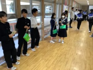 健康福祉委員会が「緑の募金」活動に取り組んでいます。28日(火)から、朝の登校時間に生徒玄関で呼びかけをおこなっています。毎日募金してくれる生徒もおり、協力する姿勢や温かい心に、朝から嬉しい気持ちになります。