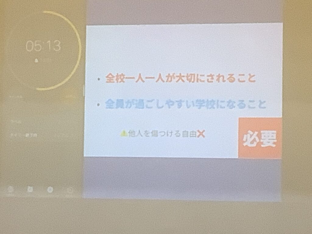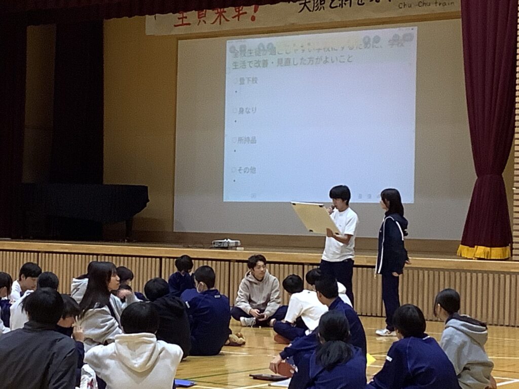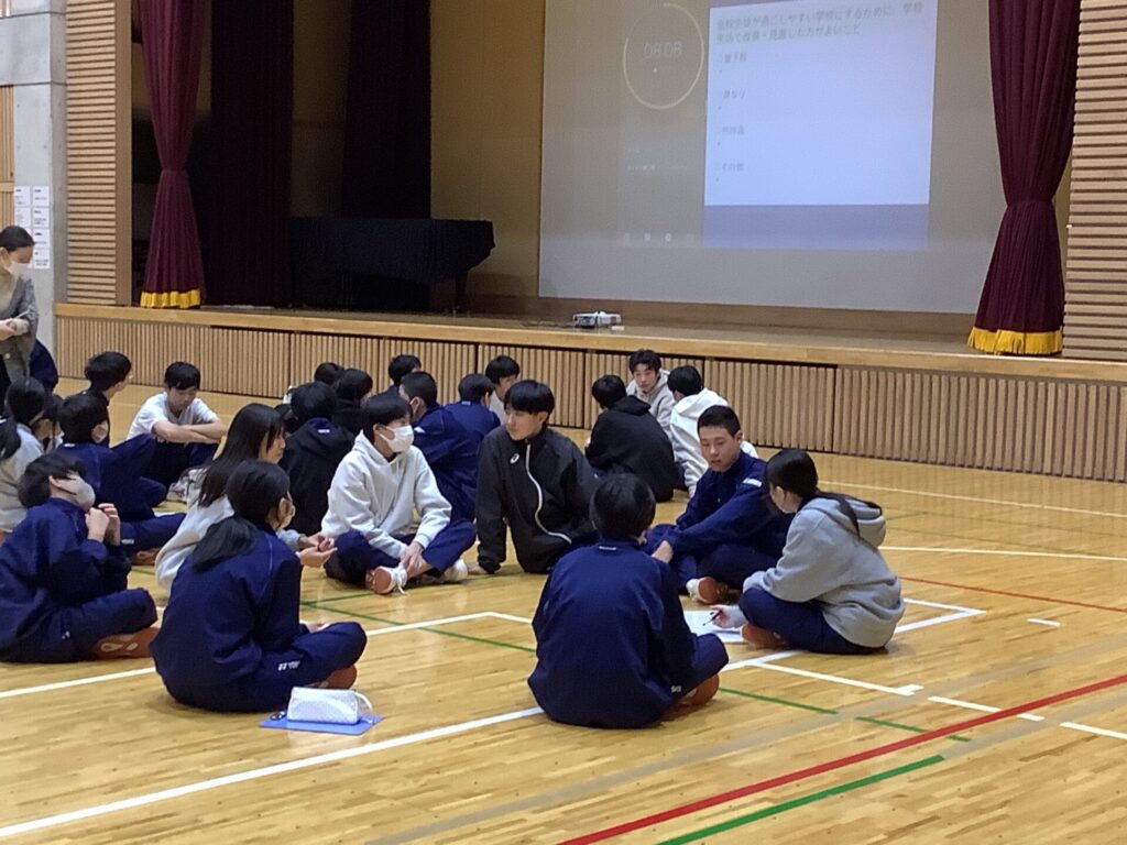 5、6時間目に、「学校生活を考える会」を開催しました。生徒が、自分たちの力で主体的によりよい学校生活を育んでいくことを目指したものです。「全校生徒ひとりひとりが大切にされ、全員が過ごしやすい学校にすること」を基準に、学校生活で改善・見直した方がよいことを異学年グループで話し合いました。大変活発な話し合いとなり、様々な意見が出されました。これらの意見を、今後代議員会等で検討していくことになります。生徒の皆さん、お疲れ様でした!
