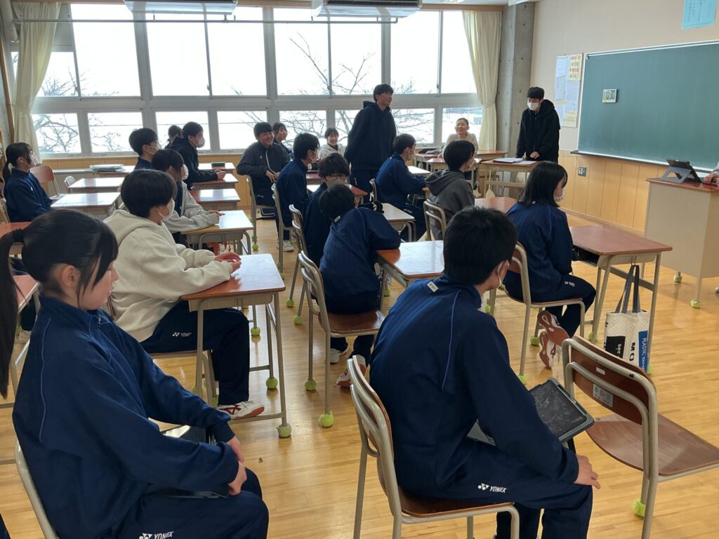 この日の午後,3年生を対象に生成AI教室(ICT活用向上イベント)を開催しました。株式会社クラフティ、新潟コンピュータ専門学校、そしてアルビレックス・チアリーダーズの皆様によるコラボレーション企画として行われました。講師の新潟コンピュータ専門学校 沢居様、佐藤様より、日々進化するICTのこれからを知り、併せて一人1台のパソコンを用意していただき、生成AIを駆使した楽曲作成や画像作成を体験しました。専門学校の学生の皆さんにもサポートいただきながら、あっという間に自分のアイデアが形になっていくことで、生徒はとても楽しそうに取り組んでいました。最後に、アルビレックス・チアリーダーズのお二人からのパフォーマンスを披露していただき、盛り上がりの中、全員で記念撮影を行い終了しました。講師や学生の皆様は、生徒たちのキーボードのスキルが高いと称賛されていました。