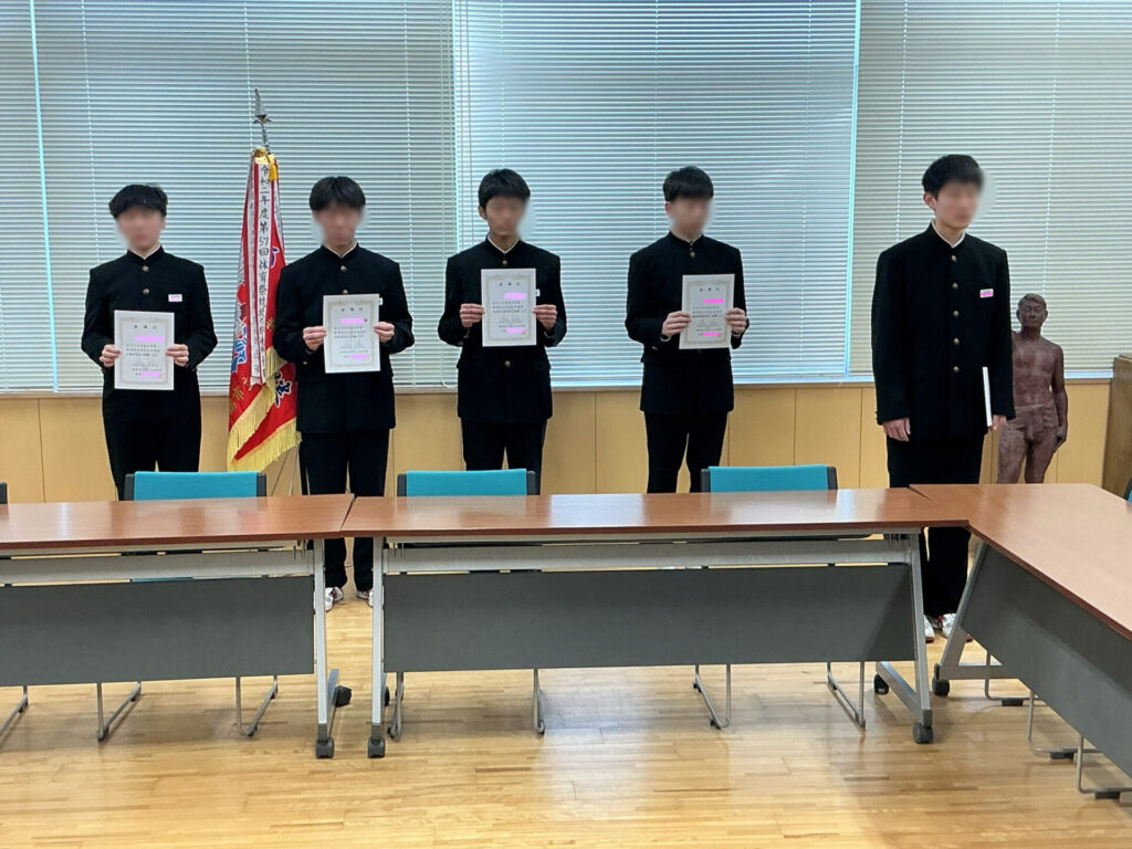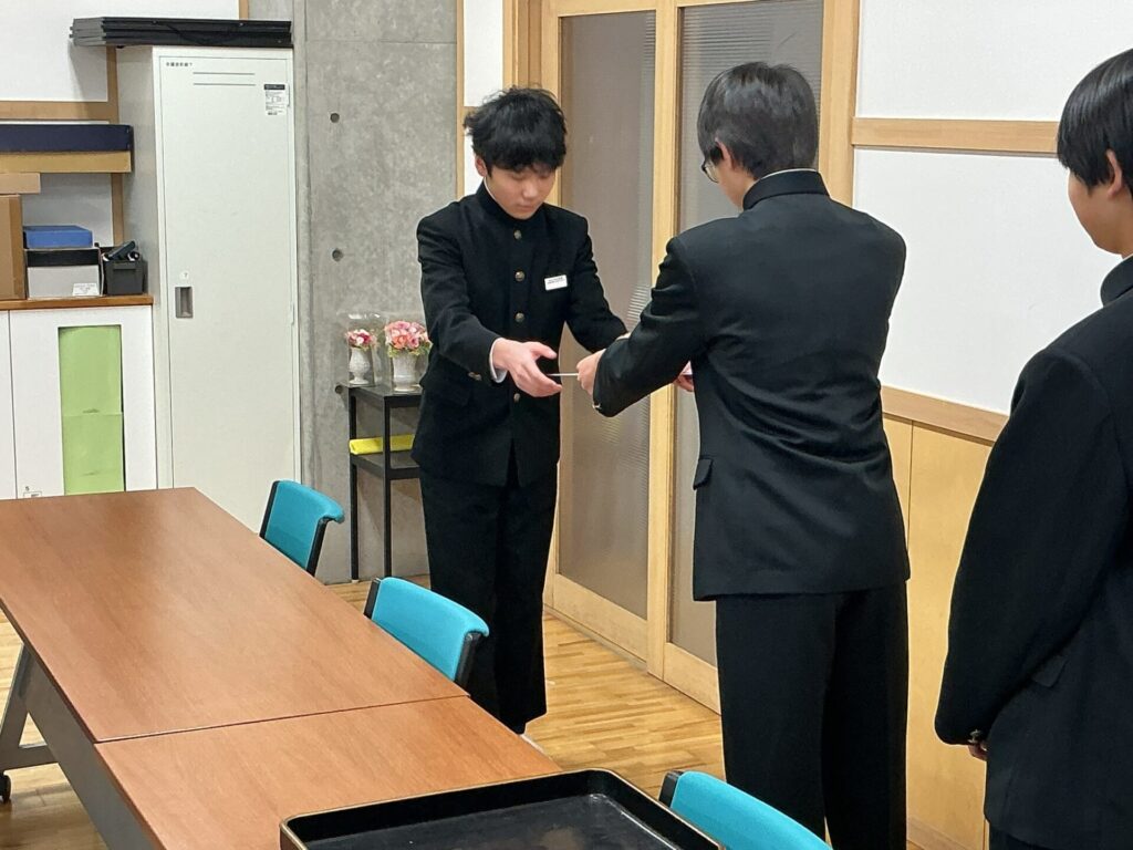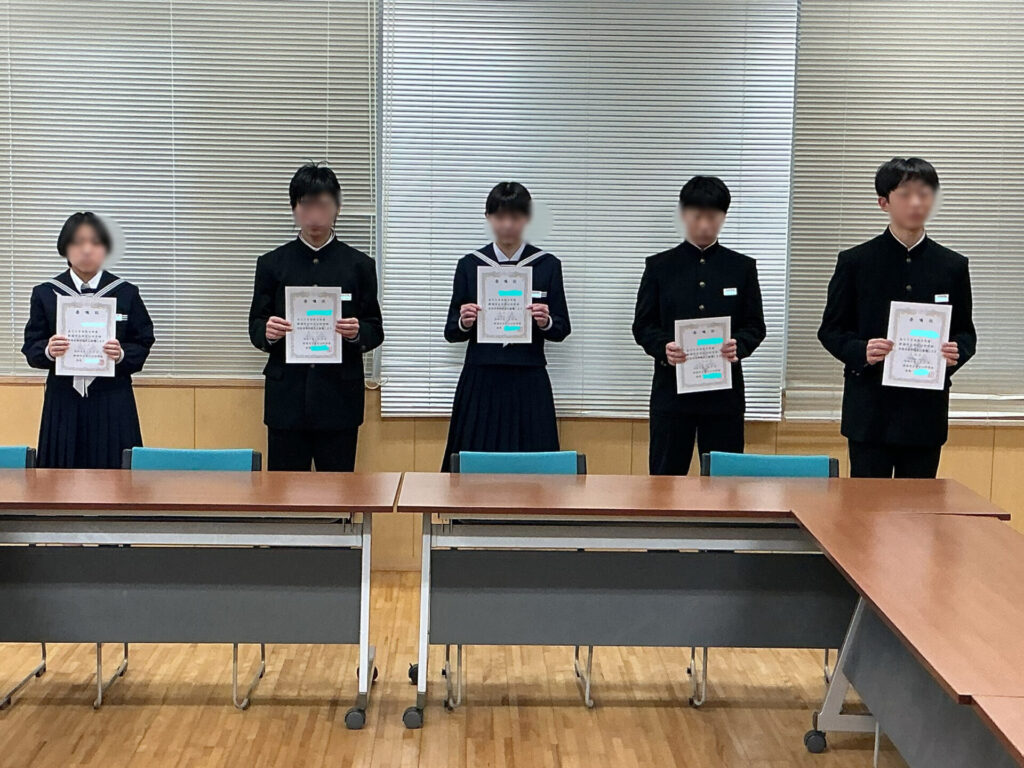 今朝の生徒朝会は、新生徒会役員委嘱式をオンラインで行いました。生徒会本部役員と各専門委員長の10名へ、生徒会長から委嘱状が渡された後、一人一人があらためて決意や抱負を堂々と述べました。全校生徒の皆さんからの温かい協力をよろしくお願いいたします。