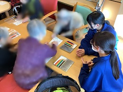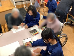 ※生徒と一緒に塗り絵をする様子