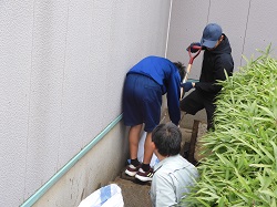 ※清掃活動では、生徒たちもそれぞれの役割を分担し、声を掛け合いながら協力して作業を進めていました。泥をすくう人、ふたを運ぶ人、道具を整える人など、自然とチームワークが生まれ、見事な連携で作業が進みました。