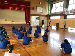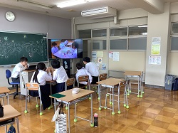 ※終業式後の学活の様子1:スライドで前期の活動を振り返っていました。