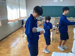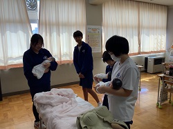 ※地域の方々のご協力により、実際の赤ちゃんとのふれあいの場も設けられました。生徒たちは緊張しながらも、優しく声をかけたり、笑顔で見つめたりと、命の尊さを肌で感じている様子でした。