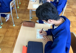 ※学校へ戻り、事業所の方々へ応援メッセージを書きました。