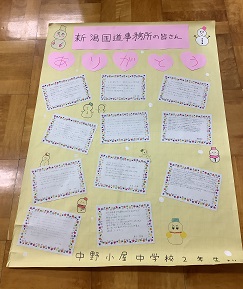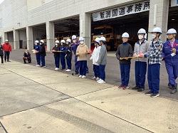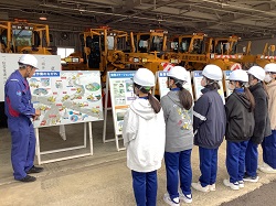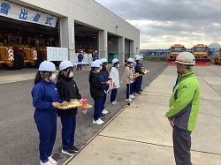 ・2年生が、新潟国道事務所・除雪車出動式に参加してきました。これは、冬の安全な道路環境を守るために活躍する、除雪車の運転事業者の方々へ、感謝と応援の気持ちを込めて行われる行事です。