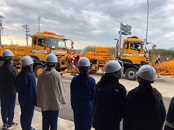 ※除雪車の出動に向けた始動デモンストレーションを間近で見学しました。