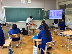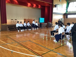 ・地域の介護老人施設より講師をお招きし、2年生を対象として介護福祉について学習しました。生徒たちは高齢者を介護するとき「どのようなことに気を付けたらいいのか」いくつかのポイントを学びました。