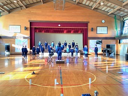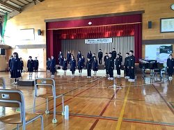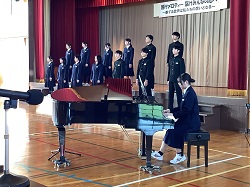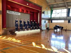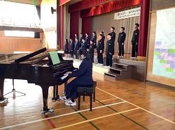※午後からは「音楽会」の開催です。最初に「校歌」を歌いました。体育館の反響もあり、讃美歌のような響きのある素晴らしい歌声でした。