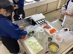 ・今回の実習に向けて、みんなで事前に調理計画をしっかり立て、素材の切り方や調理の仕方を学びました。教室で学んだことを実践です!