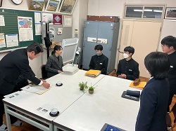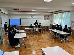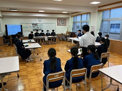 ・新潟市子ども条例に関わるオンライン意見交換会に参加した生徒会本部のもとへ、新潟市教育委員会こども政策課の方が来校されました。 こどもの社会参画をさらに充実させ、子どもたちの意見を市政により反映していきたいという思いから、生徒会総務委員へ今後の参加や協力についてお話がありました。