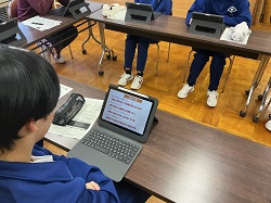 ・市から貸与されている端末が新しくなったことを受け、本校の新生徒会総務が iPad の使い方についてルールの見直しを進めています。生徒たちは、これまでの使用状況を振り返りながら「現在のルールで実態に合わなくなっている点」「改善や変更が必要だと感じる点」「新たに取り入れたいルール」など、さまざまな意見を出し合い、より具体的な案へとまとめているところです。まだ検討は続いていますが、自分たちの学校生活をより良くするために主体的に考え、行動しようとする姿勢は本当に頼もしく感じます。 端末の使い方だけでなく、学校生活全体をより過ごしやすくする視点を持って取り組んでいることも素晴らしい!