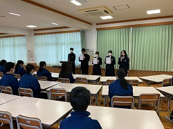 ※学級委員長より:3年生が卒業するまで、残された時間はあと数カ月です。残りの学校生活が一つひとつ思い出になるよう、これからの活動にも全力で取り組んでいきます!