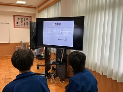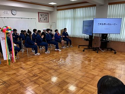 ※続いて、学級委員会から卒業生にゆかりのある先生方から寄せられた「卒業おめでとうメッセージ」が紹介されました。懐かしい先生方の言葉に、3年生の表情もどこか誇らしげでした。