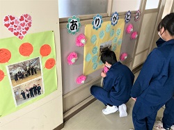 ・校内のあちこちに散りばめられた「おめでとう」の気持ちが、3年生の旅立ちをやさしく後押ししているようでした。明日からの本番が、全校生徒にとって思い出の1日になりますように。