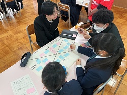 ・研修会は、ワークショップを通じて意見を出し合い、互いの思考を深めながら新たな視点を創出する学びが行われました。生徒たちは提示された課題に真剣に向き合い、互いに話し合いながら解決策を探っていきました。