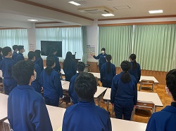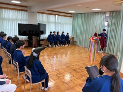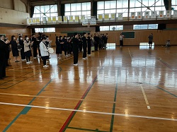 ・卒業式が近づき、今日から3年生の卒業式練習がスタートしました。初回の今日は、式に臨むうえでの心構えを確認し、礼の仕方や立ち方・座り方など、基本的な動きを中心に練習しました。一人ひとりが真剣な表情で取り組む姿から、卒業を迎える実感と、これまでの学校生活を大切に締めくくろうとする気持ちが伝わってきました。