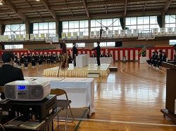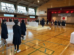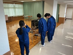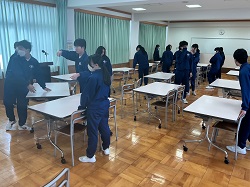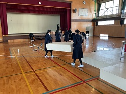 ※卒業式練習を終えたあと、3年生がサッと後片付けに取りかかる姿が見られました。誰かが指示を出すわけでもなく、気づいた生徒が動き、周りの仲間もそれに続いて協力していく——そんな落ち着いた連携がとても印象的でした。これまで積み重ねてきた、3年生らしい思いやりと責任感が感じられました。