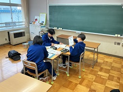 ・R7年度最後の定期テストが目前に迫り、放課後の教室には自主的に学習へ取り組む生徒たちの姿が見られます。自由参加ではありますが、多くの生徒が集中して課題に向き合っています。どの教室でも、放課後とは思えないほど、学習に向かう姿勢が立派でした。