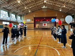 ※卒業記念のくす玉割りでは、代表の3年生が見事にくす玉を割り、会場から大きな拍手が沸き起こりました。