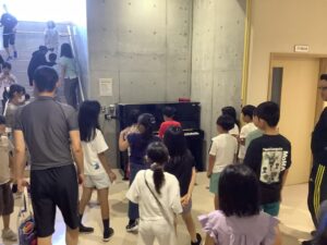 ピアノの音色が廊下に響き渡りました。今日から寄贈されたピアノを子どもたちが演奏しています。一階のホールは、ピアノのコンサート会場のようでした。
