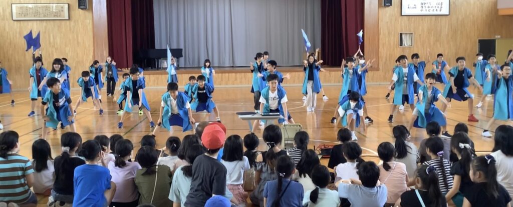 来週9月13日の総踊りに向けて、6年生が全校の前で披露しました。緊張しながらも、一生懸命踊る姿に、会場は大きな拍手と笑顔に包まれました。本番が楽しみです。6年生がんばれ!