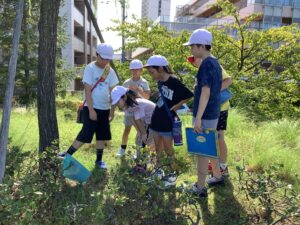 晴天に恵まれたやすらぎ堤で「謎解き」を、体育館では「大波小波」の縄跳び運動を行いました。異学年で力を合わせて、2つのチャレンジを乗り越えることができました。