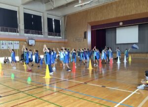 体育館に6年総おどりチーム南風降臨!自分たちで作った衣装を身にまとい威勢のいい掛け声でまほろばを披露しました。