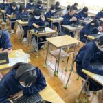 全国学力テスト1日目、『英語3技能(読む、聞く、書く)』。iPadを使ったテスト形式。