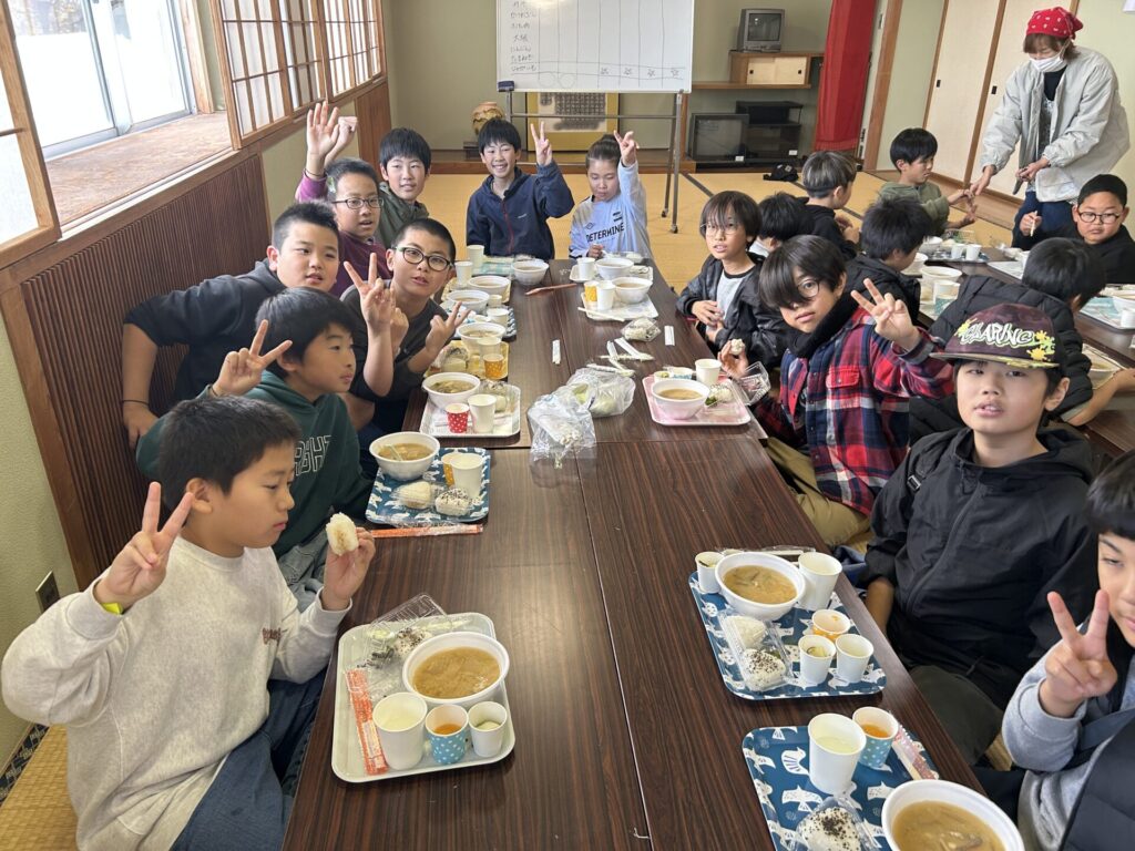 11月29日(土)に濁川公民館でにっこり食堂(こども食堂)が行われ、5年生が育てたお米、おにぎりが振舞われました。