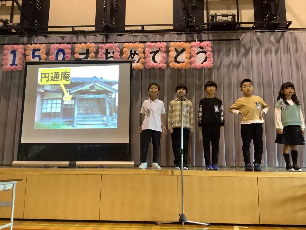 10月11日(土)に当校の創立150周年式典と学習発表会を行いました。長浜南区区長(関副区長が代理で出席)、南区教育支援センター所長をはじめとしたご来賓の皆様、児童・保護者・卒業生・地域住民等、20 …