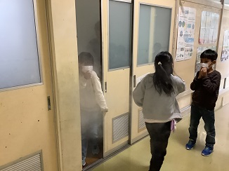 3年生は社会科で消防の学習をしました。消防士からいただいた資料をタブレットで見ながら学習をしました。その後、無害の煙を使って火災体験をしたり、水消火器を使って消火体験をしたりしました。命を守る仕事を …