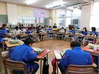 月潟給食センターの方々が当校の給食の時間に合わせ来校されました。配膳・喫食・片付けの様子をご覧になりました。6年生には、栄養教諭から食育指導をしていただきました。机を合わせたり、円になったりして、一 …