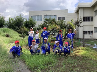 受け継がれてきた学校田で育てた稲を5年生が収穫しました。刈った稲は、体育館脇にはざがけしました。6月から水の管理を続けてきた5年生。夏休み中も分担して世話をしてきました。今後は、脱穀、籾摺り、精米を経て、最後には食します。農家さんの指導・協力を得て、米作りを頑張った子どもたちでした。