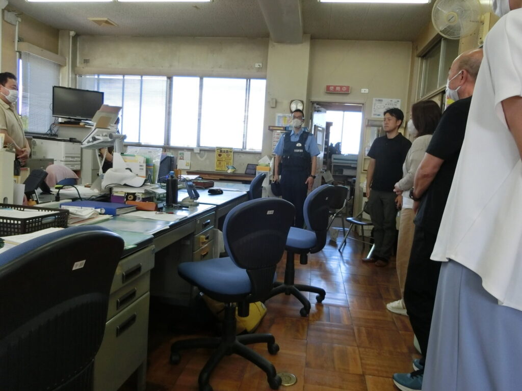 子どもたちは、体育館で警察署員と行動を振り返り、対応の仕方の指導を受けました。真剣に話を聞く子どもたちでした。また、職員室でも警察署員と教職員とで訓練の振り返りを行いました。様々な状況を想定し、その都度どのように行動・指示するかを学びました。子どもの命、自分の命を守る体制整備を、毎年研修していきます。