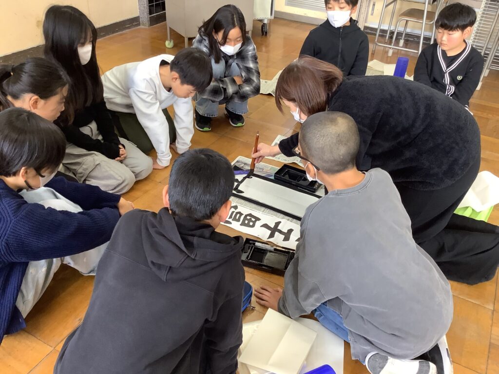 今年も小杉習字教室の小杉先生から全学級の書き初め指導がありました。紙の中心に文字を書くこと。筆にしっかり墨を含ませ、余分な墨をすずりに落としながら筆先を整えること。起筆・折れ・止めで、筆にトントンと力を入れることなど、小杉先生は一人一人に声を掛けてくださっていらっしゃいました。何度も練習し、よりよい字を書こうという気持ちのこもった作品ができがることでしょう。