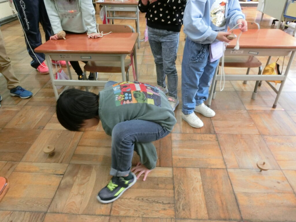 1年生は生活科で「昔の遊び」を体験しています。竹とんぼ、コマ、あやとり、メンコ、ビー玉、ヨーヨー、折り紙、など。わたしも子どもの頃、一時期、これら全ての遊びに熱中したことがあります。昔の遊びには、必ず「コツ」があります。何度もあきらめずに挑戦し、できた喜びを味わうことで達成感を得ます。「〇〇ができるようになりたい」。この気持ちをもてる子は、様々なことに対して意欲をもって取り組む子になります。「つまんない。やめた」と投げやりにならず、コツを聞いたり、やり方を変えたりして頑張ってほしいものです。大人は見守り、勇気付ける声掛けをするといいですね。