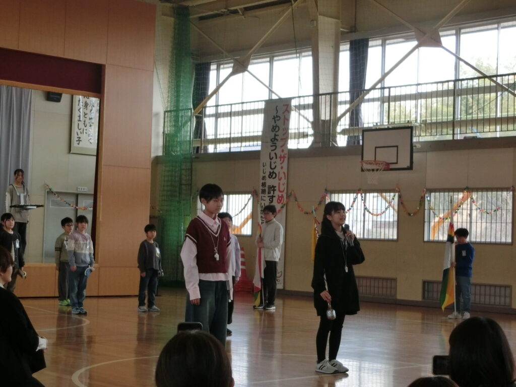 今年も主指揮の6年生から5年生へ鼓笛隊の杖が引き継がれました。これまで同様、1~5年生は、新しい担当楽器や立ち位置等、演奏練習や全体練習を重ねてきました。保護者の皆様が見守る中、緊張しながらも堂々とした演奏を披露しました。来年度の地区民大運動会での演奏がデビューです。