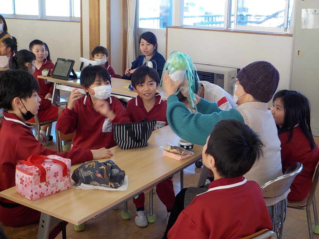3年生は、総合的な学習の時間に大根を育てました。また、大根を干して食べる保存食づくりにも挑戦しました。子どもたちは、たくさんのことを教えてくださった農家の方や食生活推進委員会の皆さん、お手伝いしてくださったボランティアの皆さんを招待して、大根パーティーを開こうと計画を立てました。当日は、たくさんのお客さんが来校され、一緒にゲームやクイズをして楽しみました。