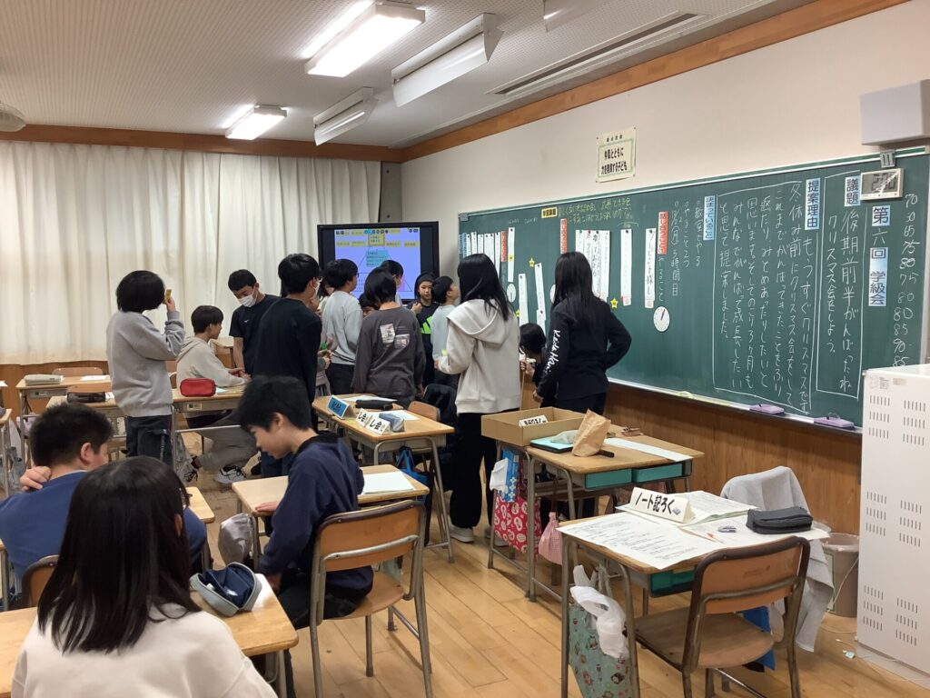 議題「後期前半がんばったねクリスマス会をしよう」 「楽しく互いを認め合い成長できる会にするには、どうしたらよいか」という課題に向けて、みんなで話し合っていました。 みんなが、しっかりと意見を …