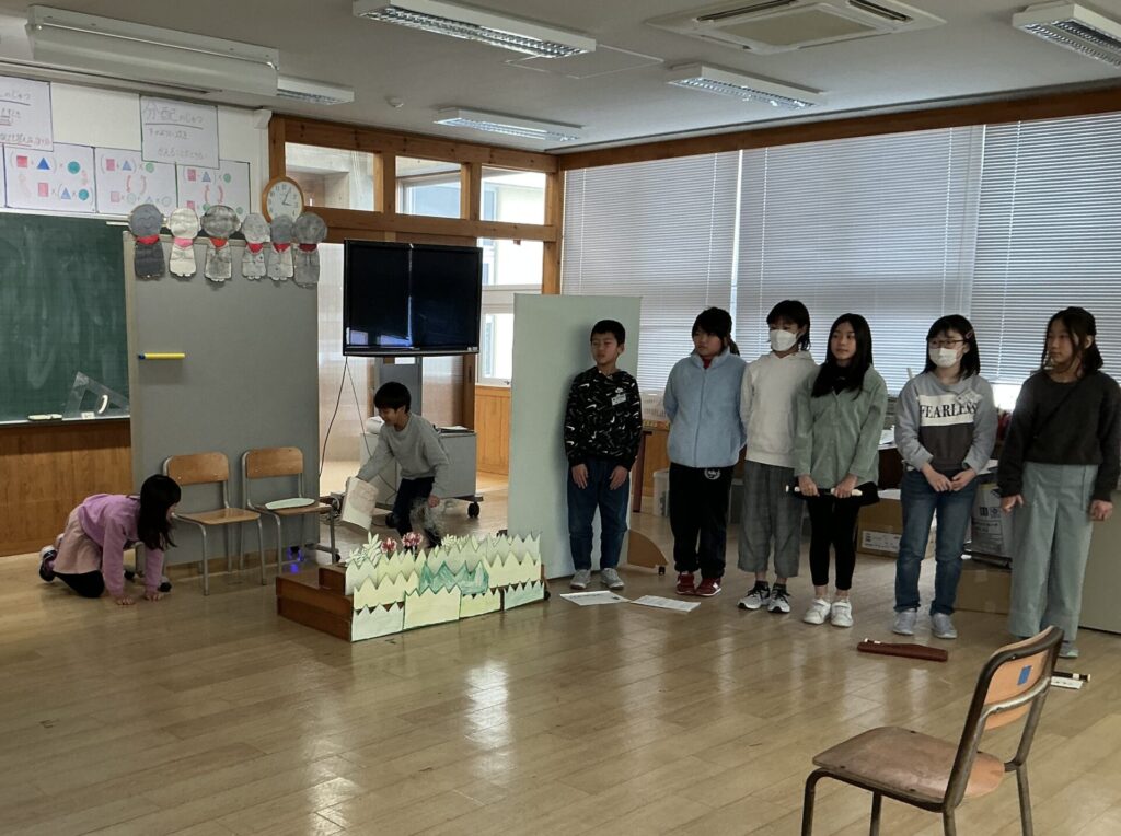 4年生が金曜日の学習参観で行う発表練習をしていました。 効果音もあって、とても上手に発表していました。 「今でも素晴らしいけど、〜するともっとバージョンアップするよ」と言ったら、やる気に満ち …