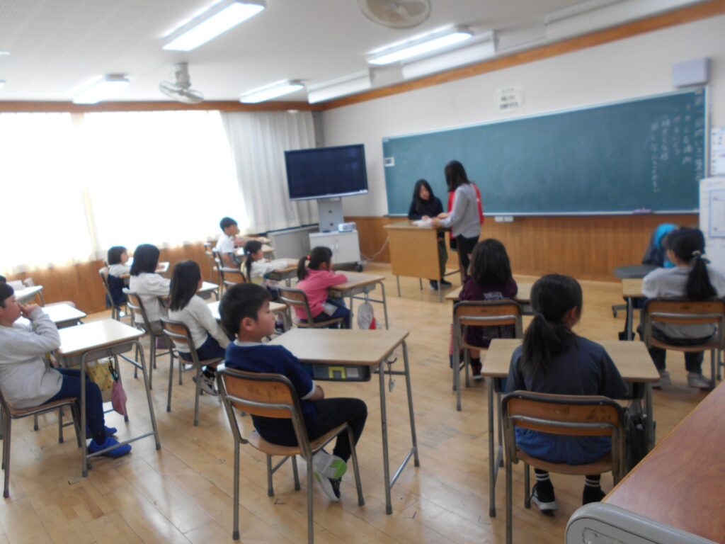 3時間目に地域集会がありました。 約束を確認したり、 自己紹介をしたりしました。 集団下校では、不審者が出た等、一人で帰ると不安、危険な時にみんなで帰ることを確認しました。